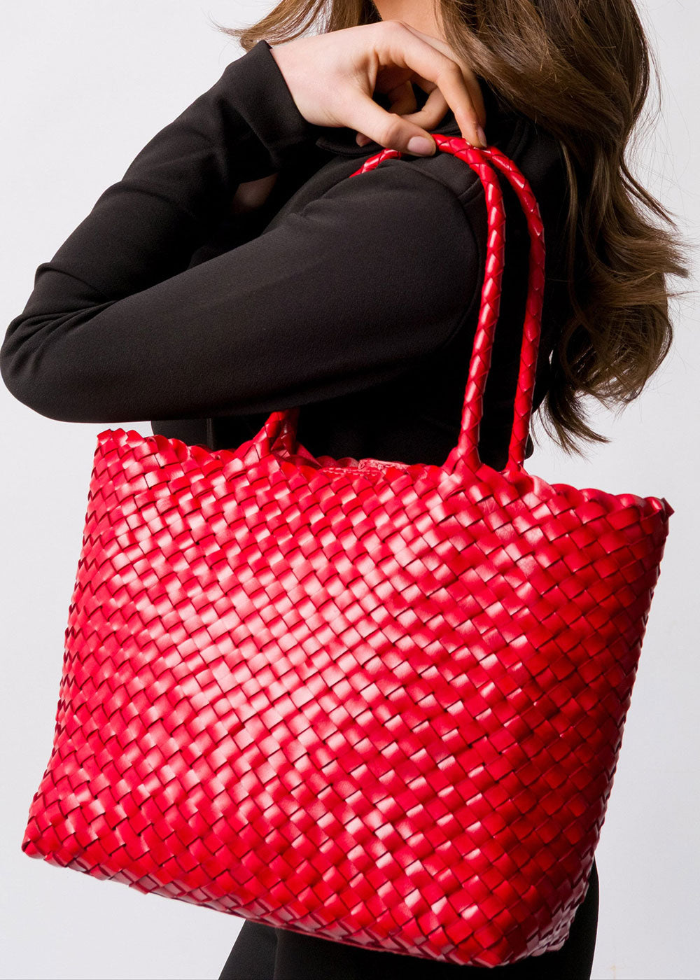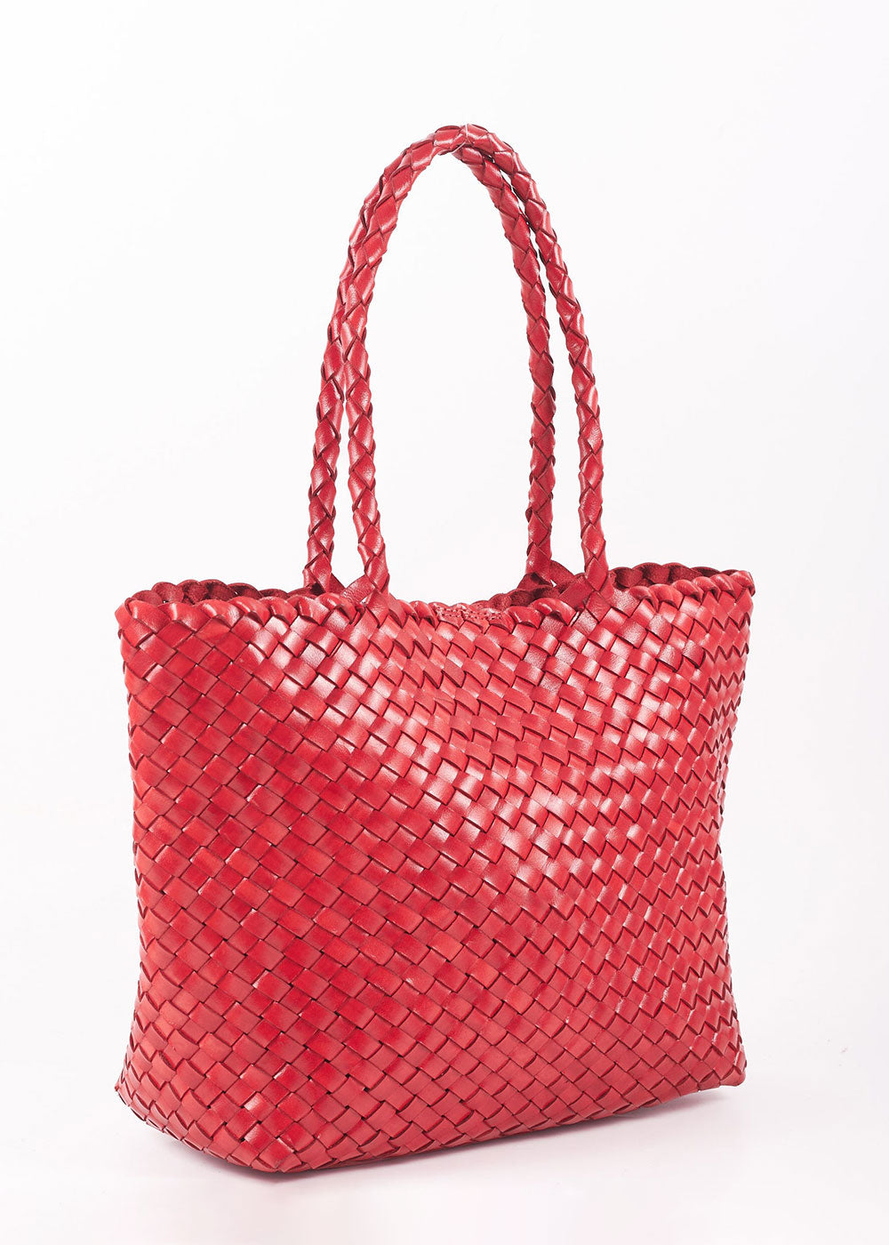 Leia Woven Leather Box Bag - Red