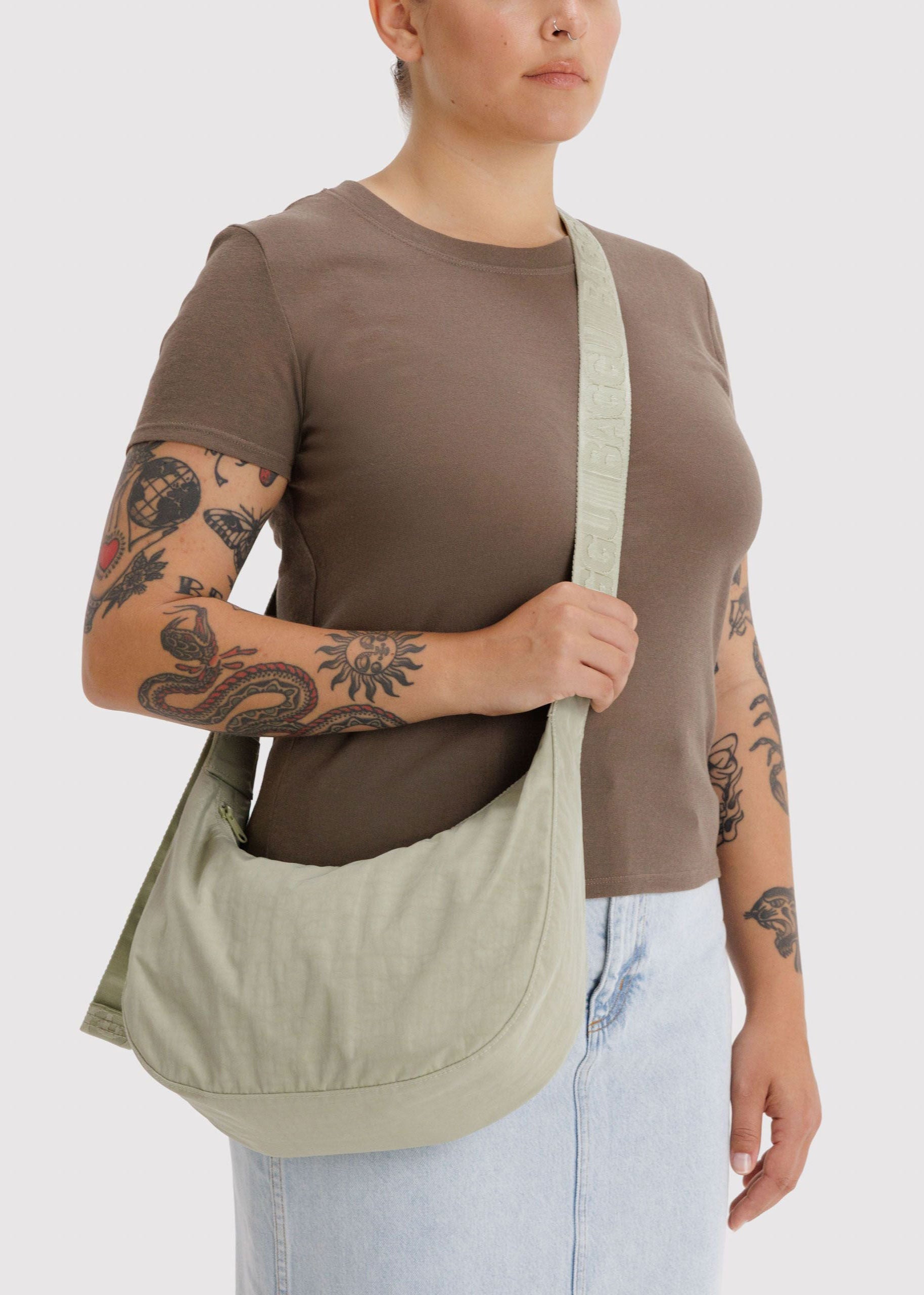 Medium Nylon Crescent Bag - Celadon