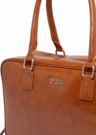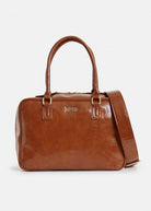 Essentiel Light Brown glossy structured crossbody bag