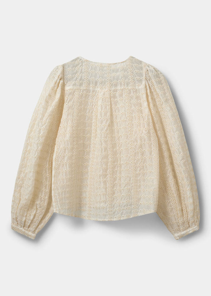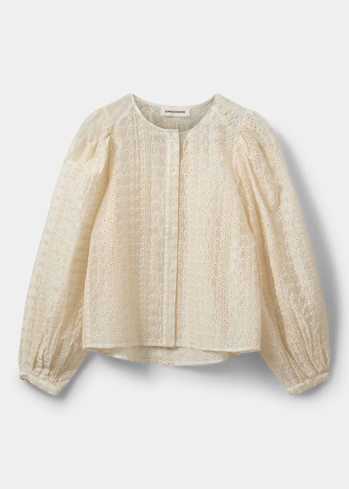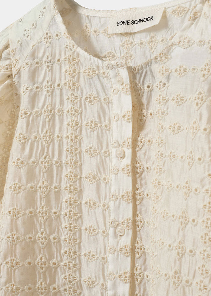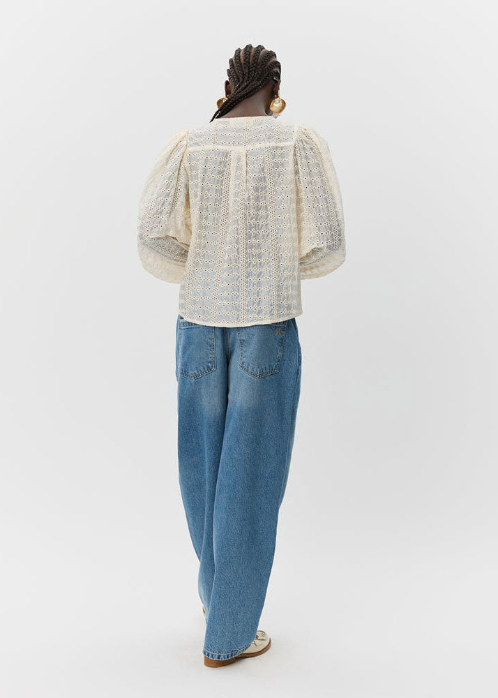 - Cream-colored blouse with broderie anglaise