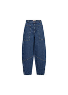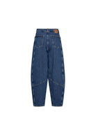 A contemporary statement piece, these barrel-shaped jeans feature a high waist and distinctive seam details that create a modern, sculpted silhouette. Made from organic cotton with a hint of stretch, they combine structure and comfort effortlessly - ideal for styling with fitted tops or relaxed knits for a chic off-duty look.