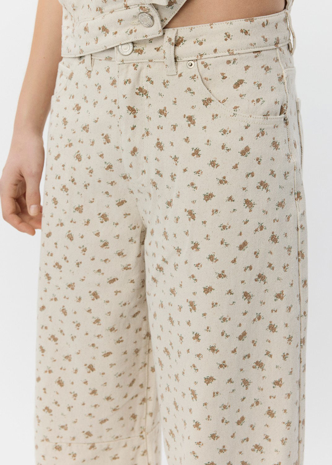 TomarSW Cropped Barrel Jeans - Rose Flower