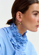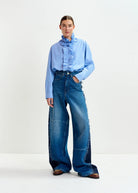 Essentiel Antwerp Blue and white oversized striped cotton shirt with ruffle details