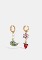 Essentiel Antwerp Gold earrings with blue whale and red strawberry