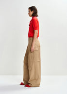 Essentiel Antwerp Red fine-knit polo with light pink scarf-like contrast collar