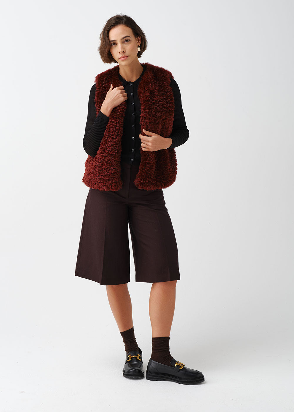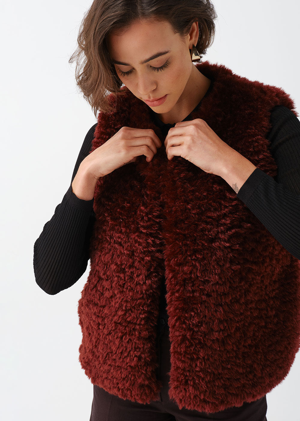 Faux Sheepskin Gilet - Burgundy