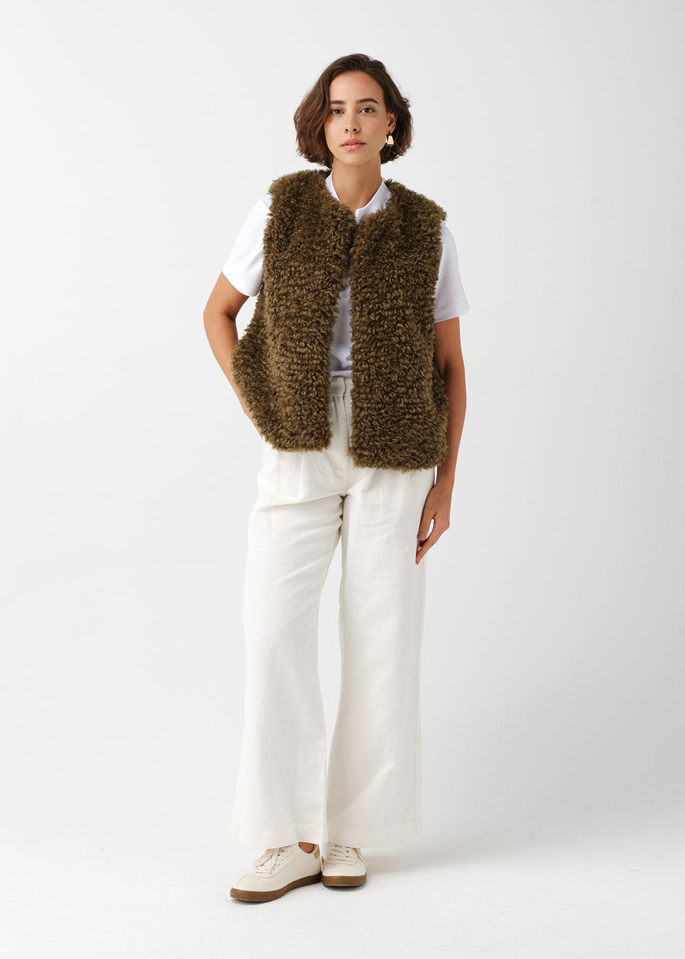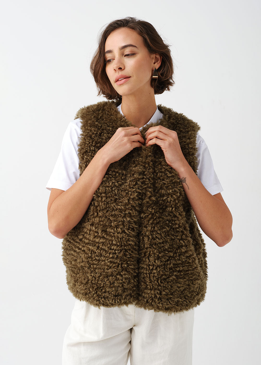 Faux Sheepskin Gilet - Forest Green