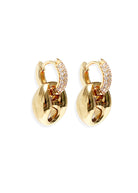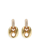 Our Capri earrings are the perfect everyday pair. Made with our link of our chunky mariner Capri chain, and rhinestone encrusted huggie. The links can also be removed if you wanted to wear the huggies alone.