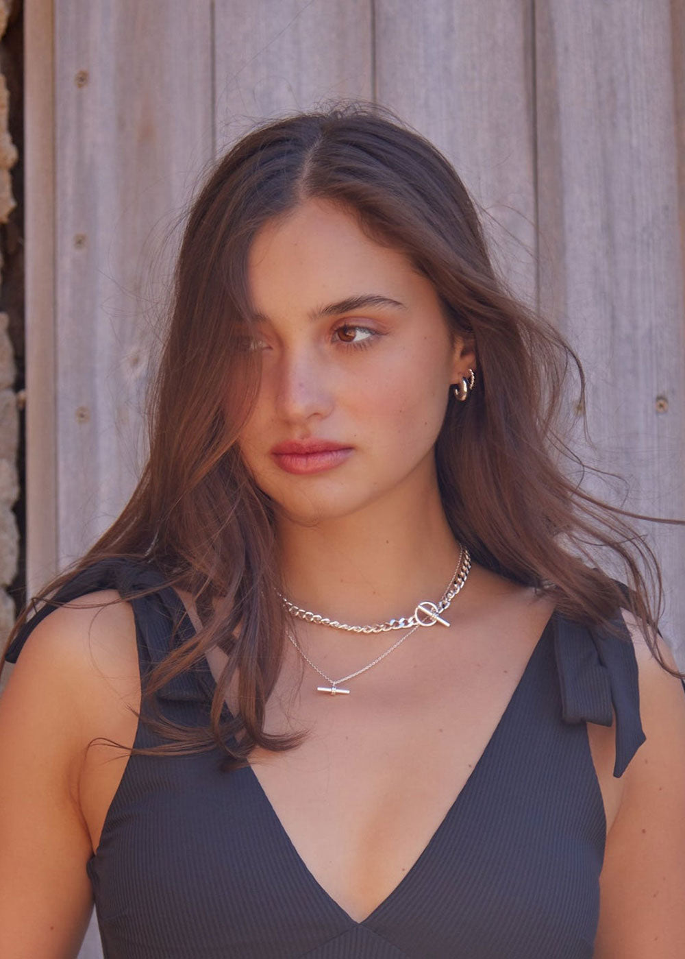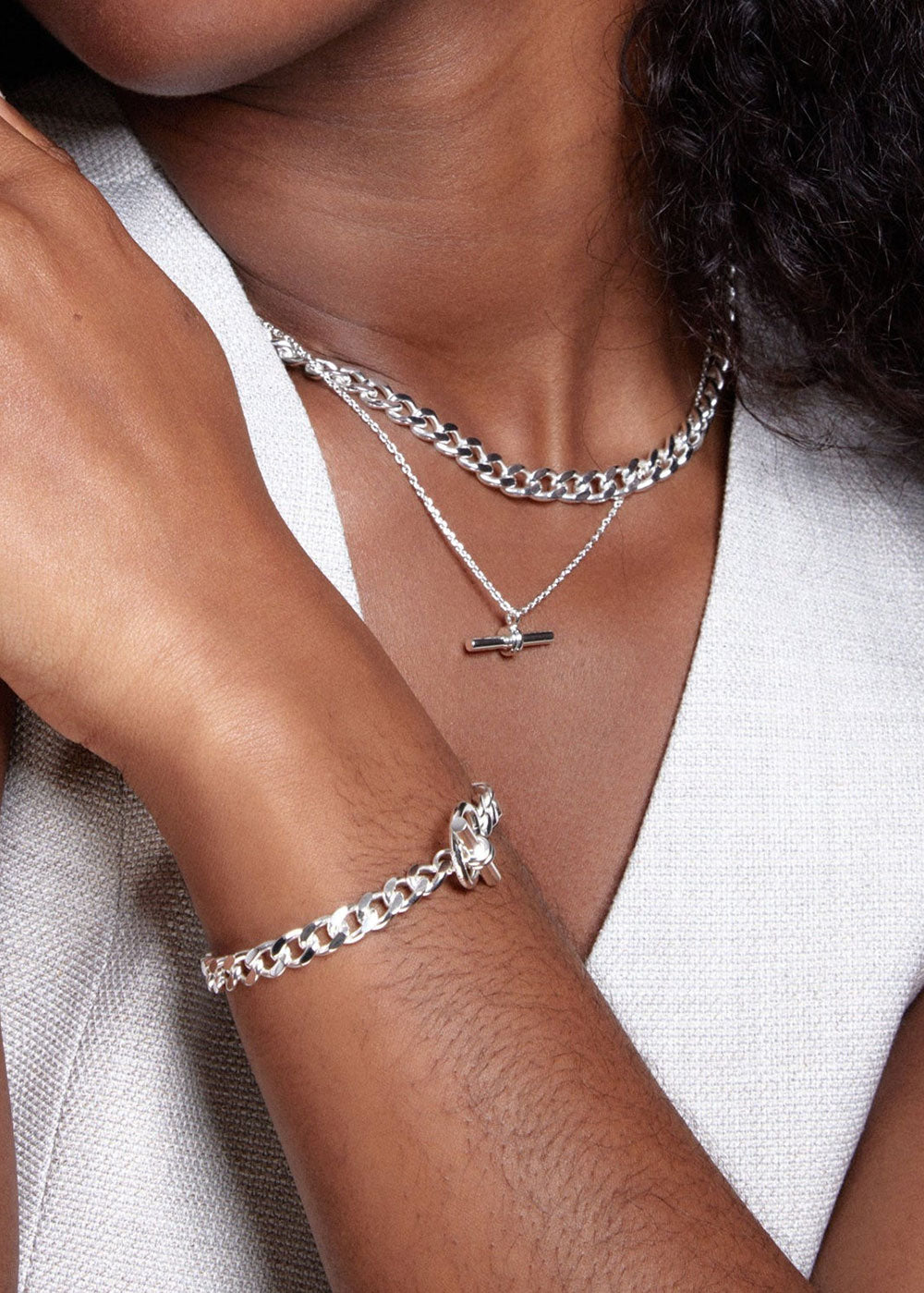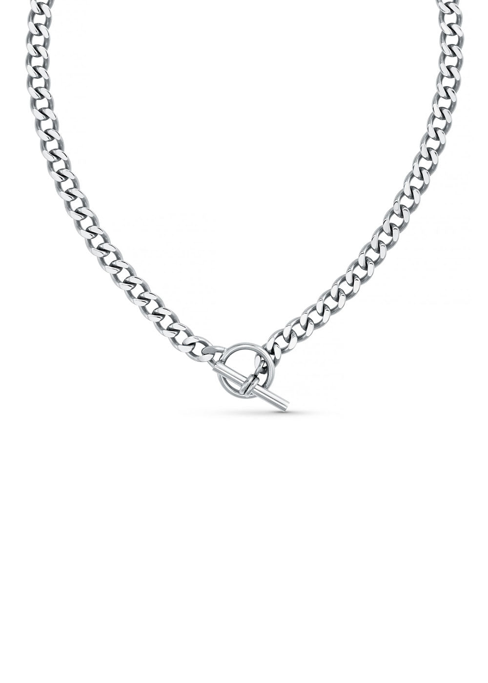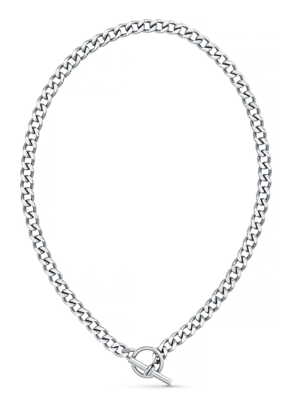 LUXE Flat Curb T-Bar Necklace - Silver