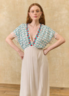 - Dress top fully embroidered on the front.