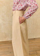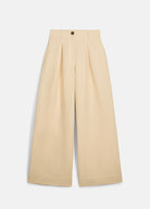 - Pleated pants in cotton and linen.
