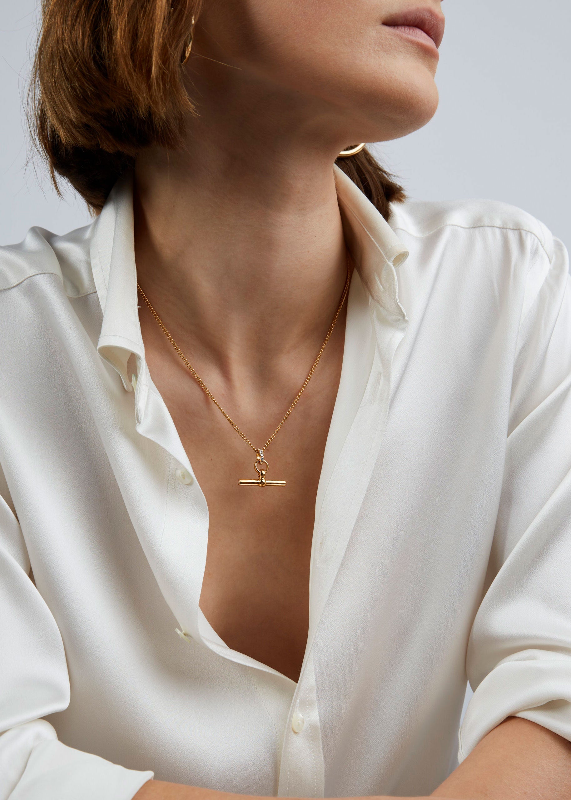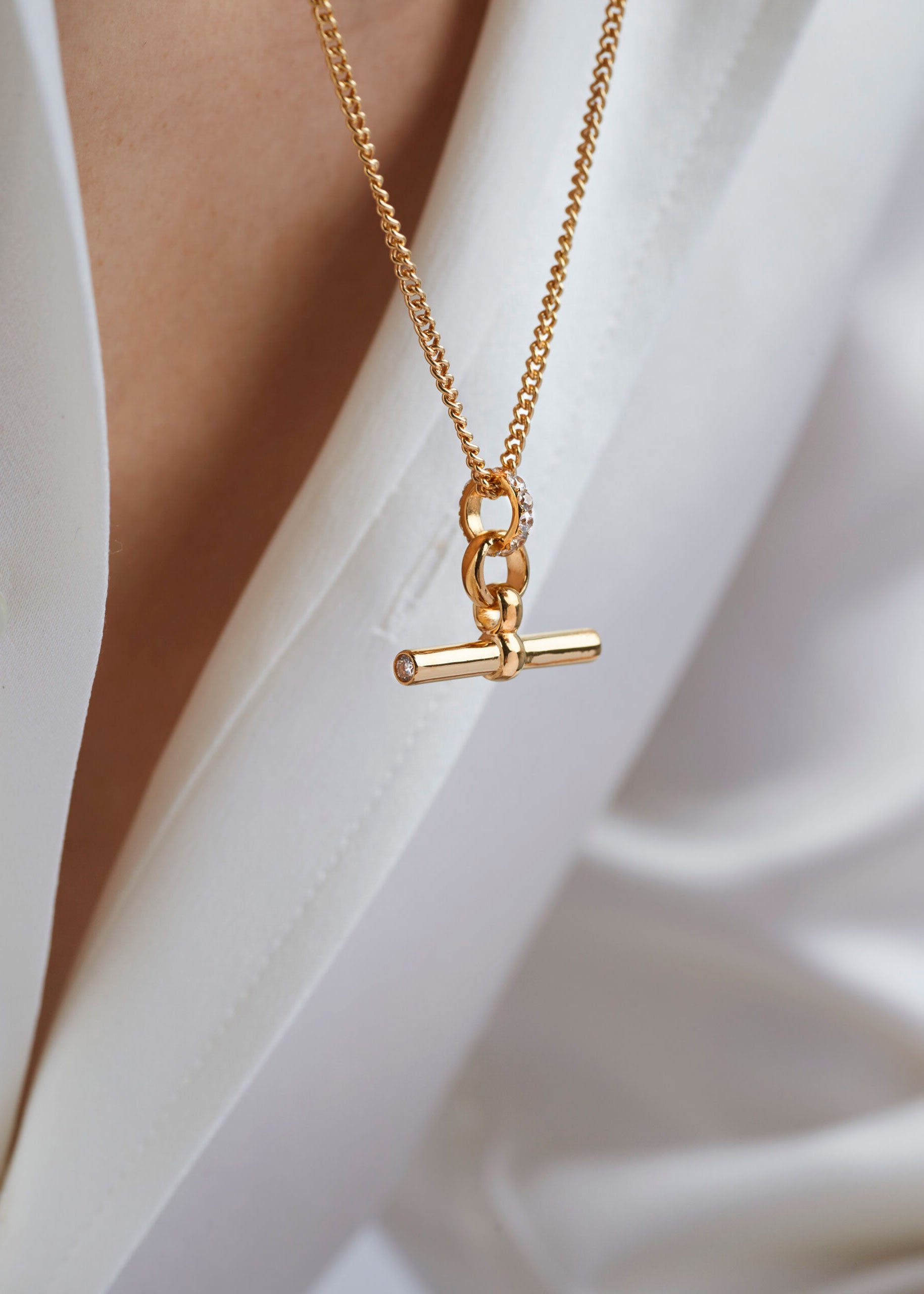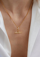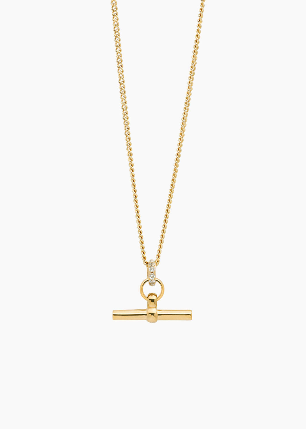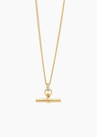 Tilly Sveaas Small Jewelled Gold T-Bar On Fine Curb Chain