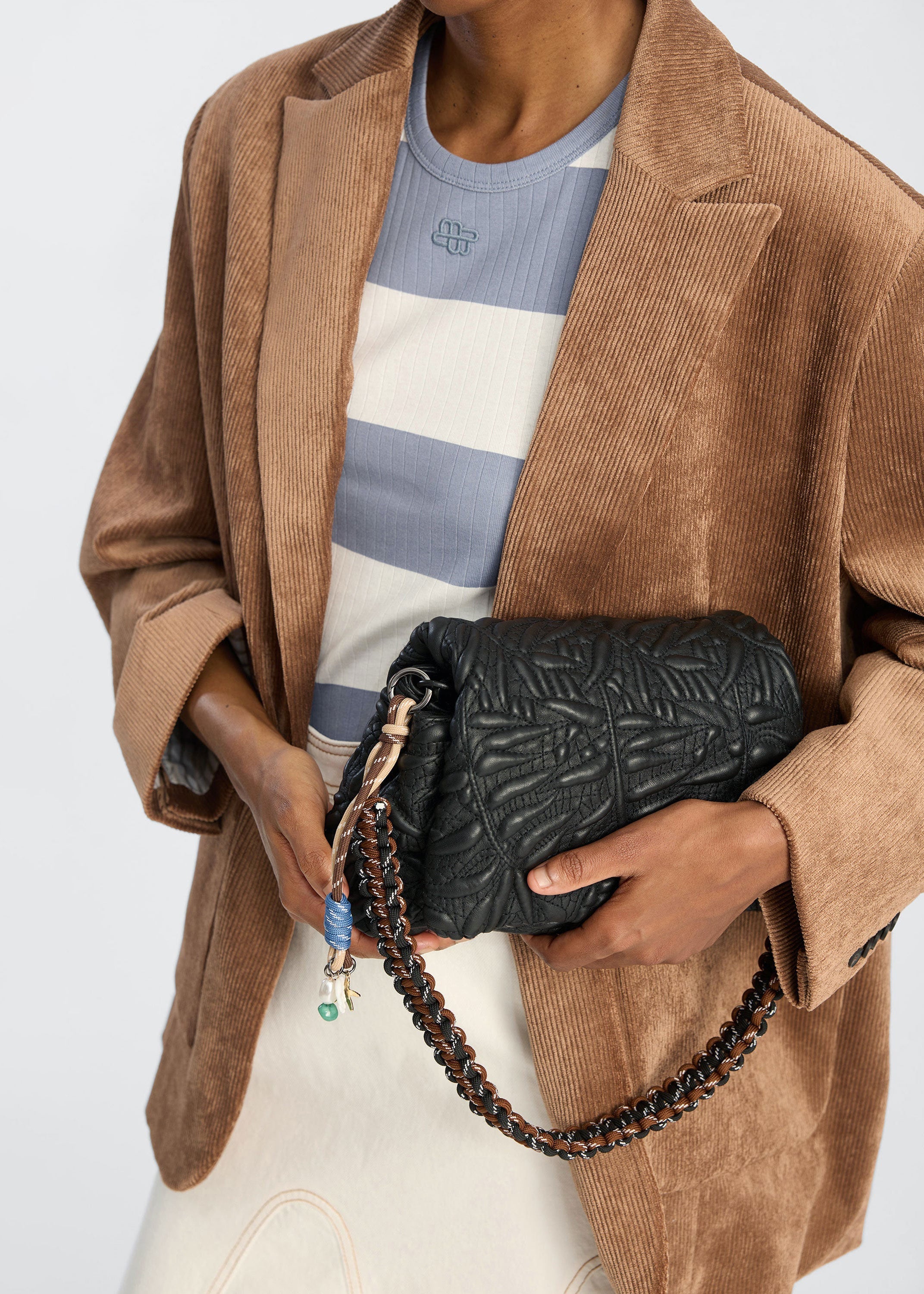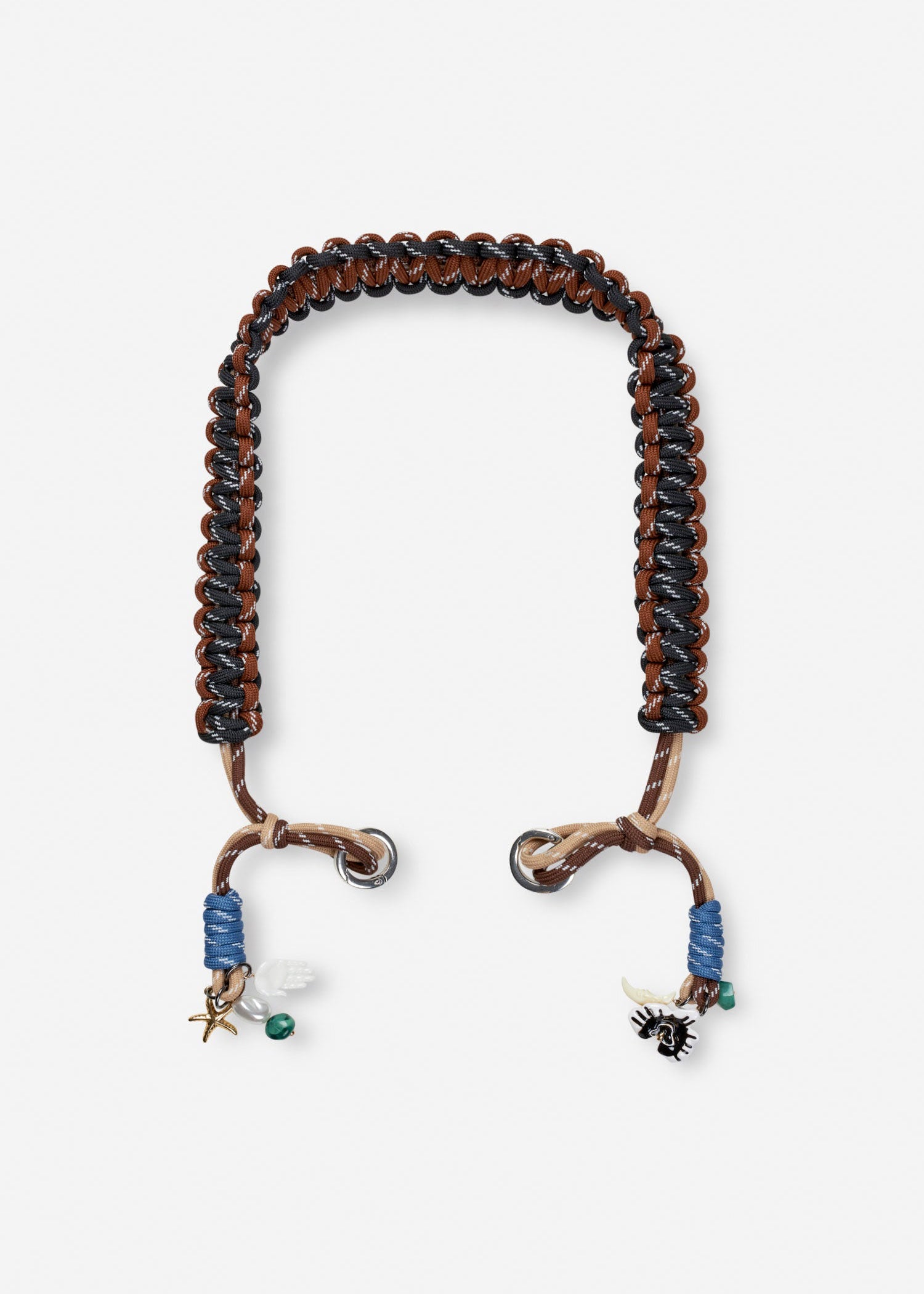 Removable bag strap in twisted rope material with refined details and charms.
