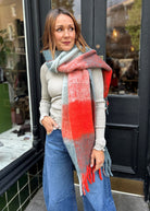 Rino & Pelle Sianna Checkered Scarf - Smoky Blue Coral