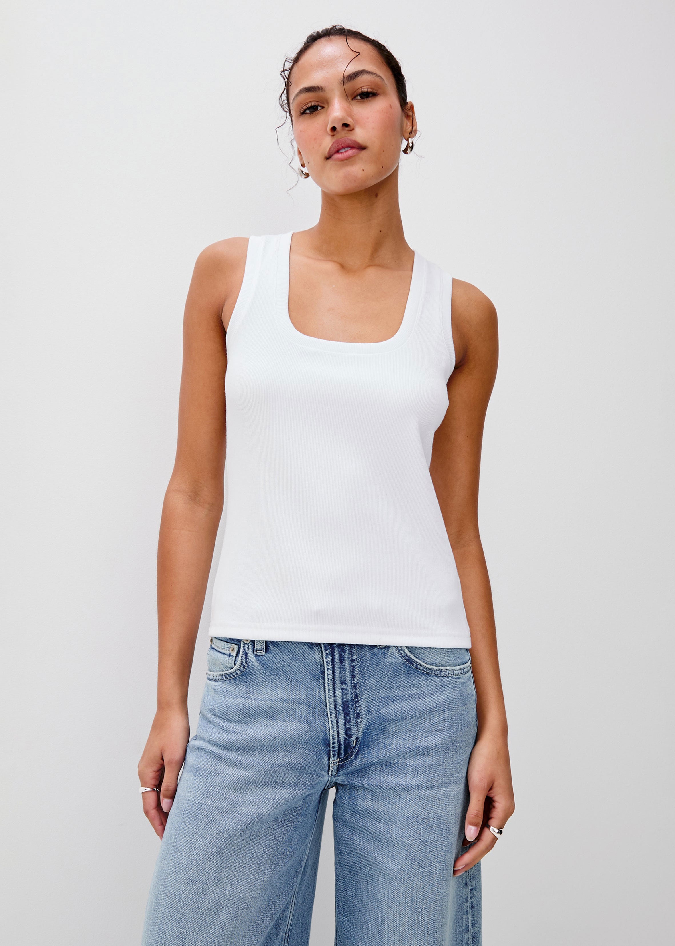 Your classic ribbed tank—in a soft cotton blend that's anything but average. Featuring a scoop neck and the perfect fit, the Bobbie tank is one you'll pull on again and again.