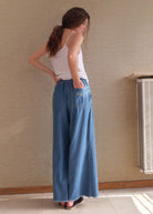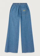 The Izeway women's trousers stand out with their wide, flared cut, long legs and elasticated waist for optimal comfort. Made from soft, authentic blue denim, they feature a back pocket embellished with an ecru embroidered logo, adding a delicate, authentic touch. A timeless style that's easy to wear every day, with a knit like a T-shirt.