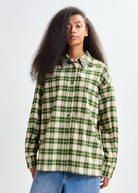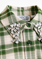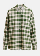 Essentiel Antwerp Green and beige checked flannel shirt with rhinestone-embellished collar