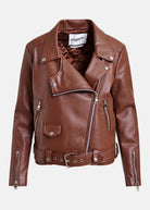 Meet your new wardrobe essential—the Jup Fitted Perfecto Jacket, a fun and fearless take on the timeless biker jacket. Crafted from buttery-soft faux leather and fully lined for all-day comfort, this jacket brings instant personality to any outfit. The eye-catching asymmetrical lapel and smooth zip closure give you that cool, confident vibe, while the matching belt with loops cinches your waist beautifully. Practical touches like angled pockets and a handy flap pocket keep things functional, and silver-tone hardware adds a polished finishing touch. Whether you're throwing it over a dress for date night or pairing it with your favourite jeans for weekend adventures, this jacket is your go-to for effortless style.