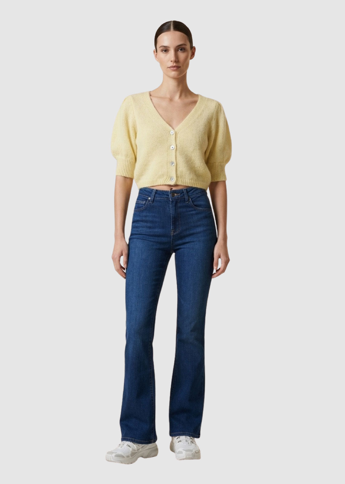 The MANDA Alpaca Cardigan combines luxurious warmth with modern comfort. Made from a premium blend of Suri alpaca and merino wool, it offers a soft, pleasant feel against the skin and optimal freedom of movement. The cropped design with slightly puffed sleeves adds a stylish, feminine touch – perfect over dresses or paired with high-waisted trousers for a cozy yet elegant look all year round.