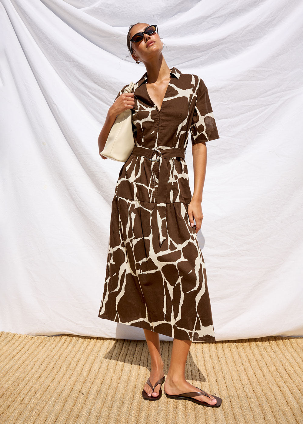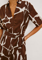 Short sleeve belted midaxi length V-neck dress.