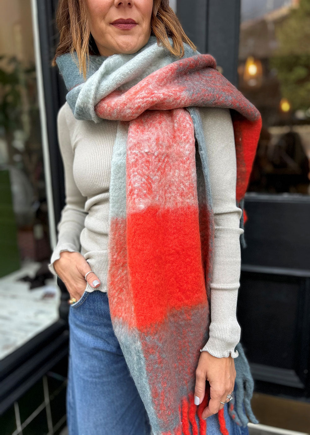 Rino & Pelle Sianna Checkered Scarf - Smoky Blue Coral