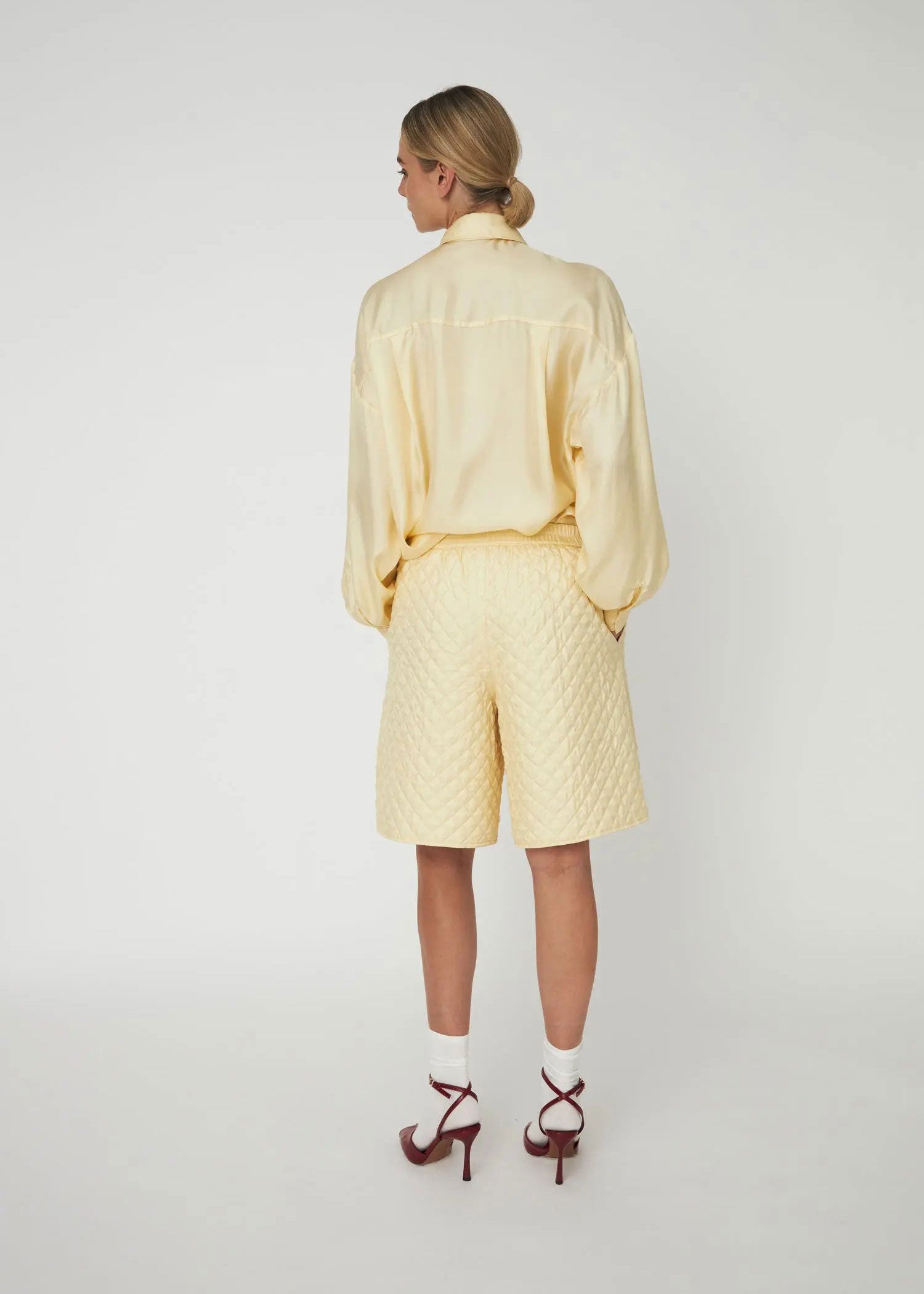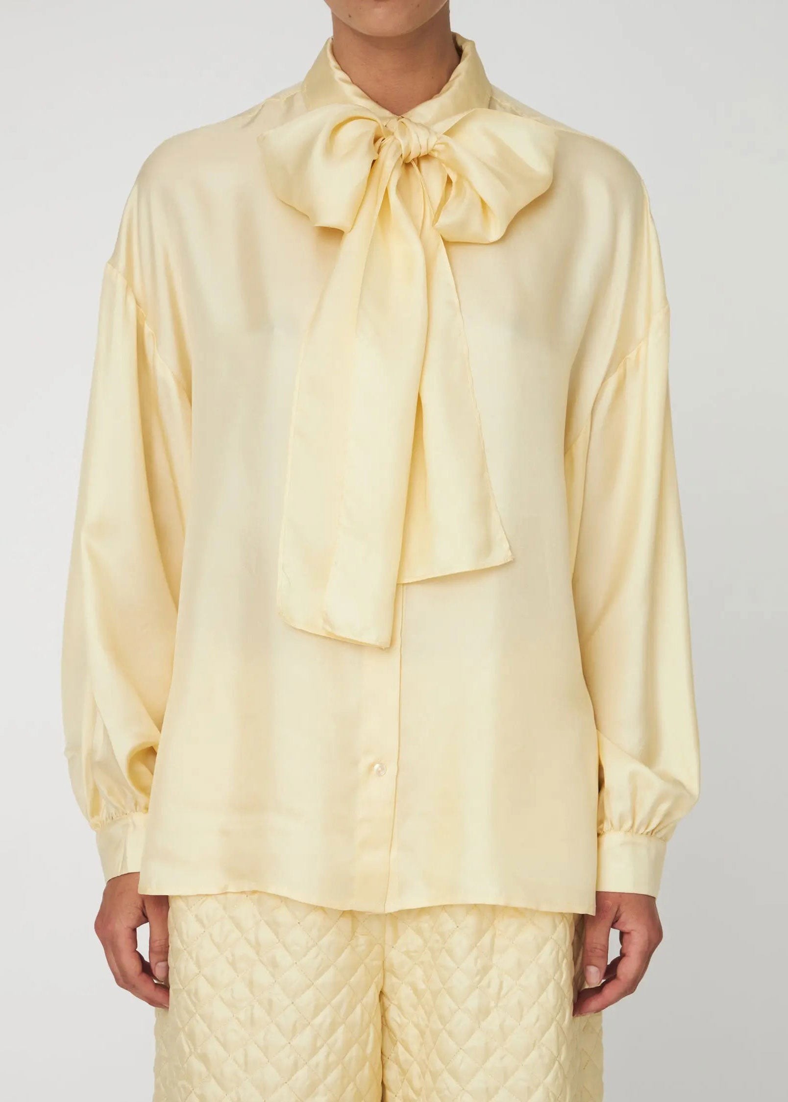 Stella Nova Oversized Silk Shirt with Bow - Soft Yellow