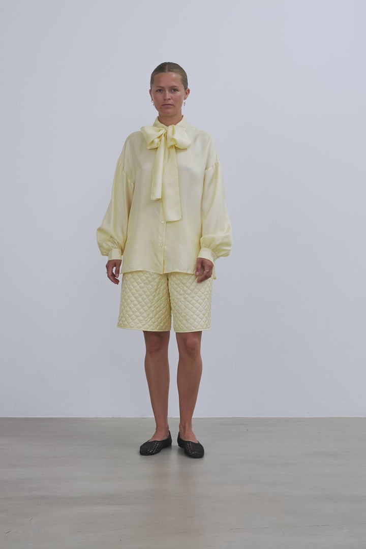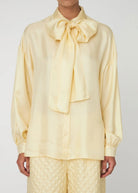 Oversized Silk Shirt with Bow - Soft Yellow