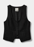 - Black vest with pin stripes