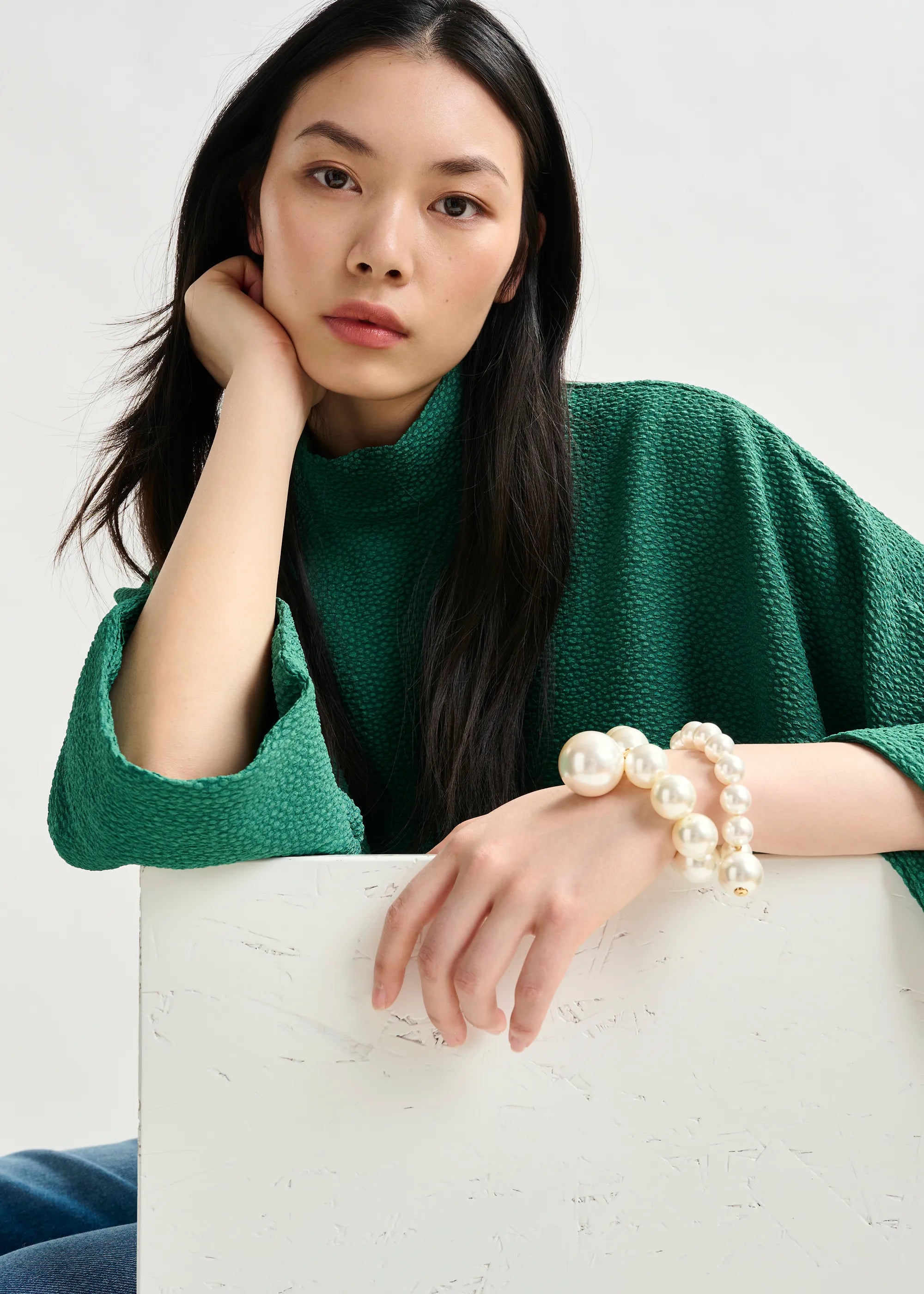 Essentiel Antwerp Green oversized top with stand-up collar
