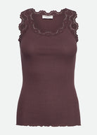Tank top with round neckline, lace straps, curling edge at the bottom and no side seams.