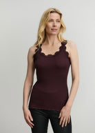 Rosemunde RWBabette Silk SL U-neck Lace Top - Fudge