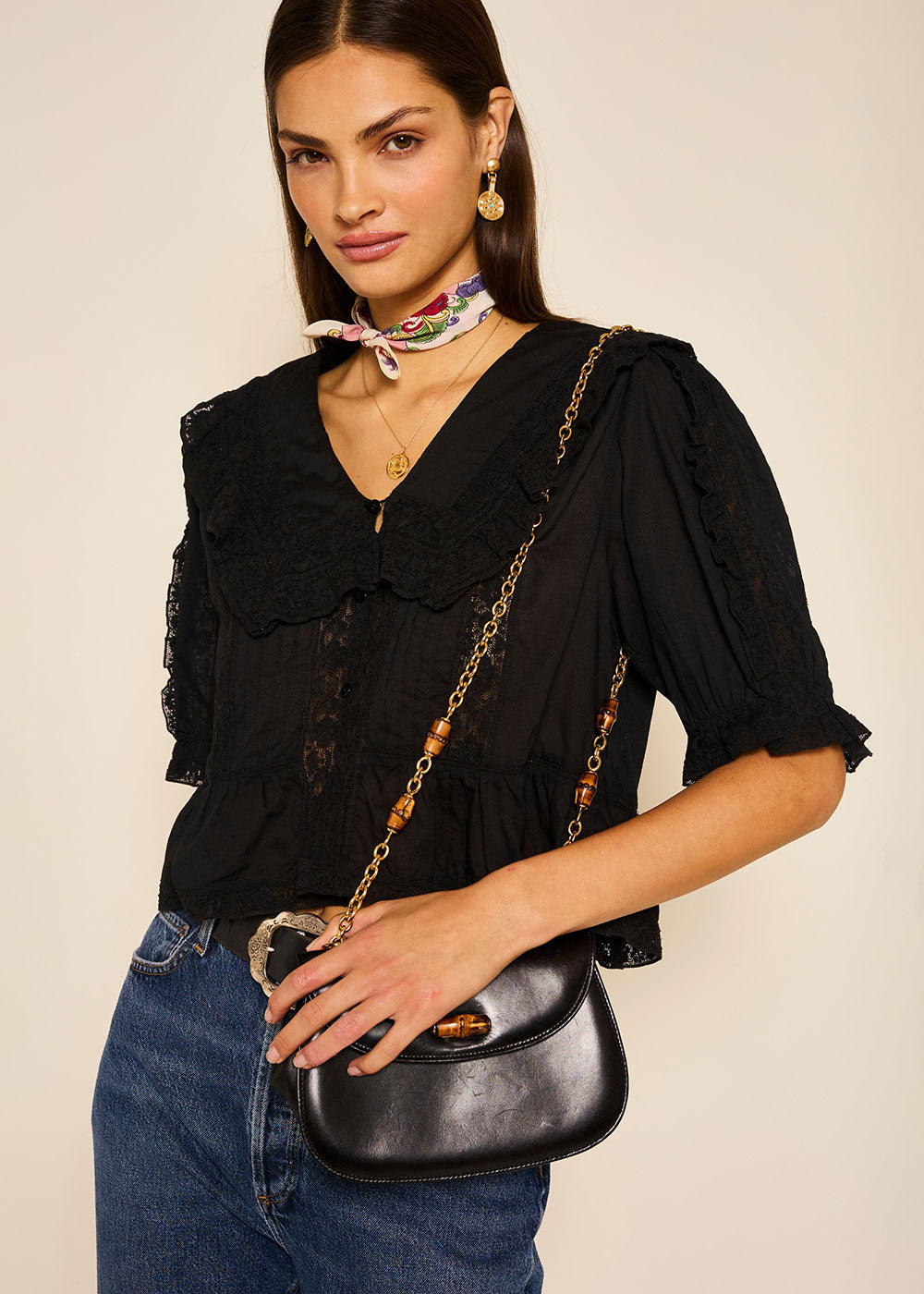 - Black cotton-voile and lace