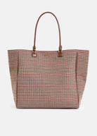 Essentiel Antwerp Brown, beige and red checked shopper bag