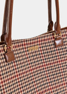 Checked shopper bag features a secure magnetic fastening, durable top handles, and a fully lined interior with a dedicated compartment to keep your belongings organized. Elegant enough for work or weekend outings, this tote is a versatile addition to any wardrobe.