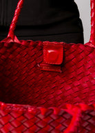 Indulge in the ultimate storage solution with our Leia Woven Leather Box Bag in Red. Crafted from chrome free leather, this bag boasts a spacious base and sides and securely fastens with a magnetic stud. Chic and versatile, the bag takes on a unique aesthetic when closed as the beautiful weave shimmers and transforms in the light.